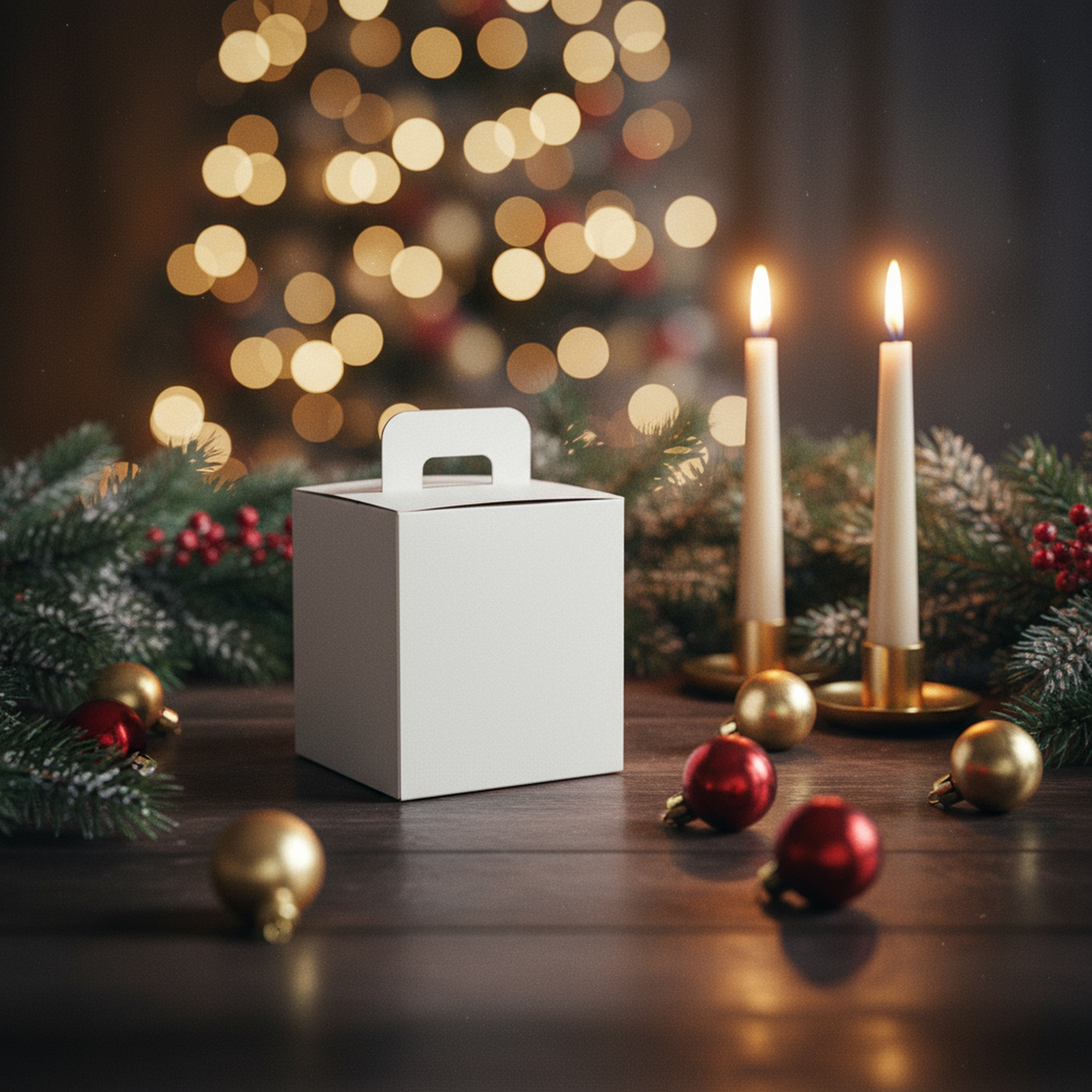 Caixa para panetone ou doces natalinos com alça embutida.