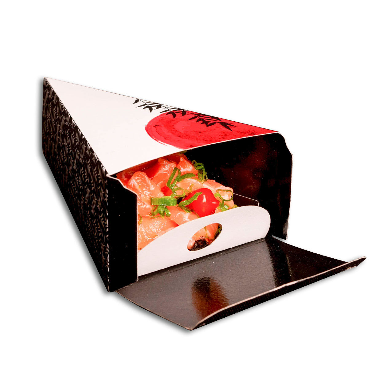 Embalagem ideal para temakis, cones de sushi ou porções individuais, garantindo apresentação elegante e transporte seguro.